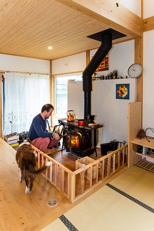 薪ストーブの火を囲む時間は、季節を問わず心地よいぬくもりを生み出し、ペットと人が同じリズムで過ごす豊かな時間を育みます。