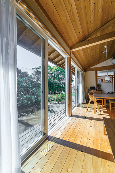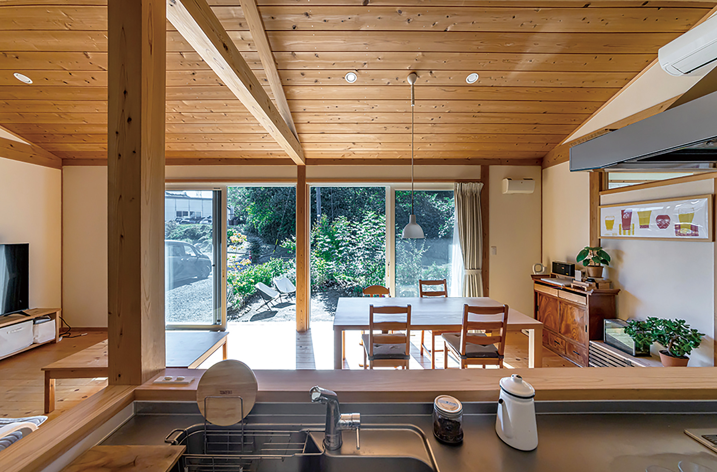 庭の緑や外の景色までも暮らしに組み込み、住まい全体が土地と一体となる心地よさをつくり出します。