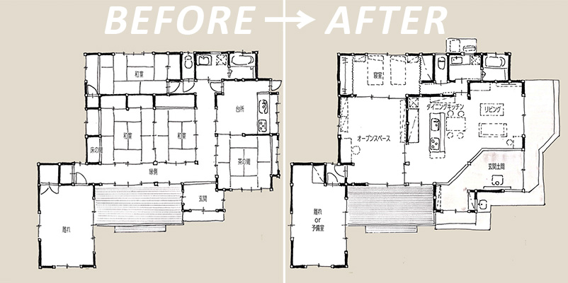 | お住まいの情報 | 延床面積:135.18m2(40.8坪)、改修面積:110.96m2(33.5坪)/夫婦 |