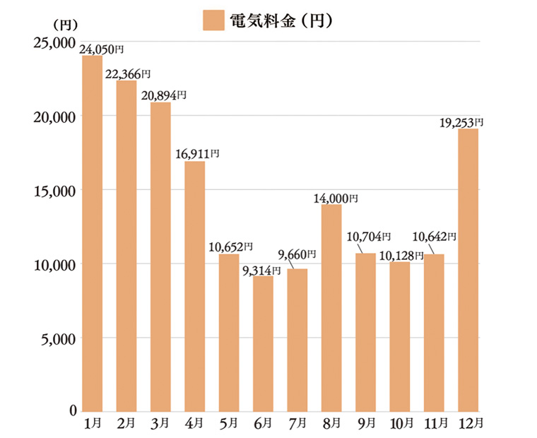 ※ 電気料金は2024年1月~12月の実測値として施主さまより提供。