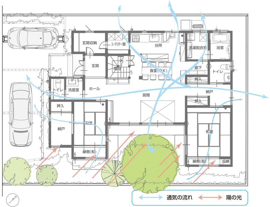 UA値:0.48W/㎡K、C値:0.3cm2/m2、冷暖房設備:床下エアコン1台+床上エアコン1台
