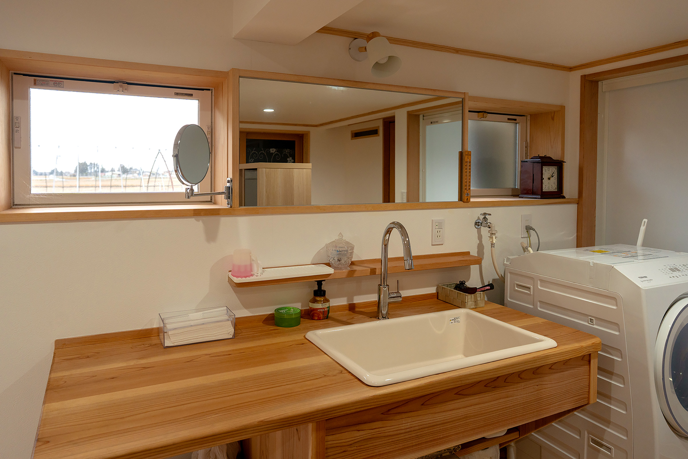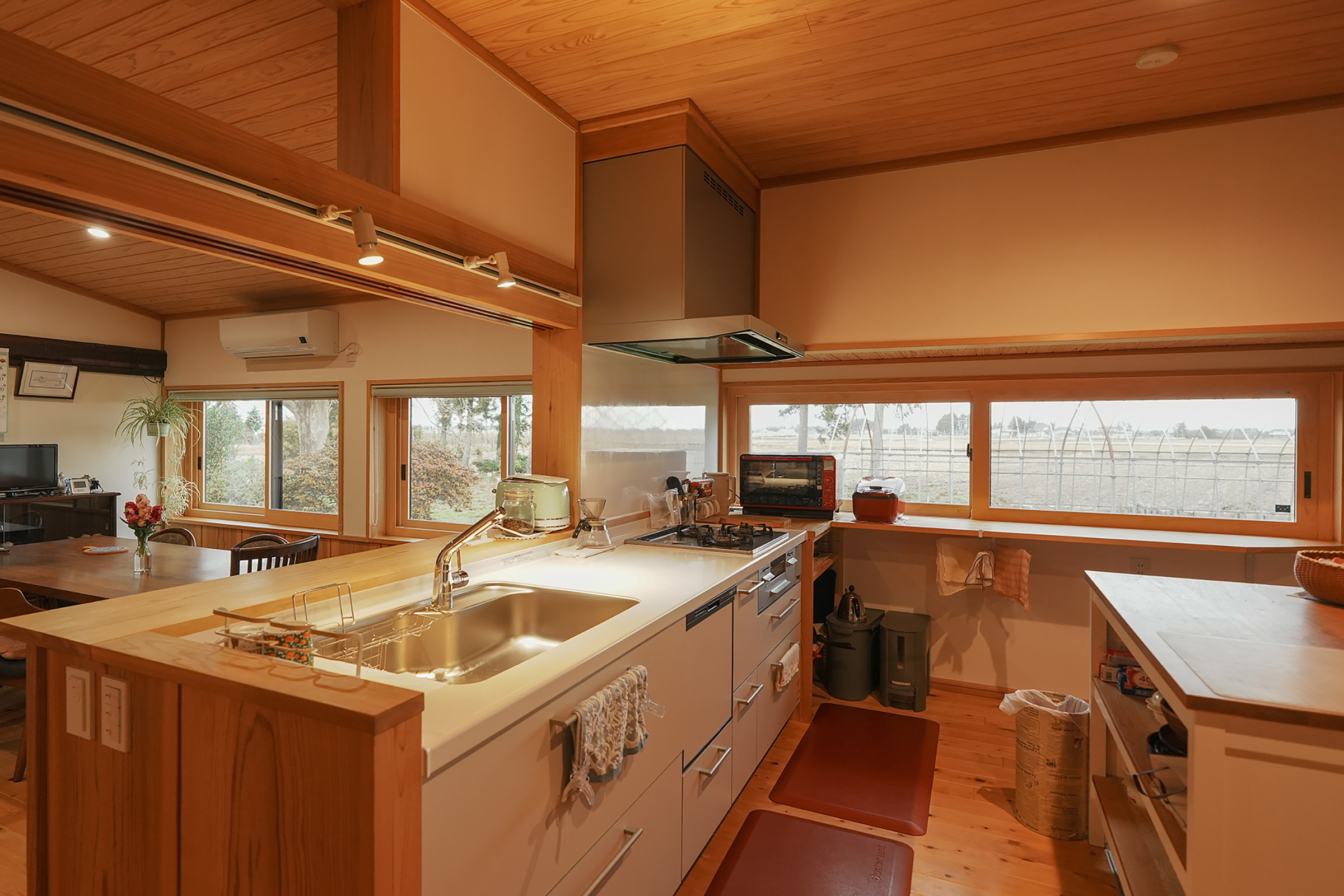 旧家の面持ちは残しつつ、普段の生活で使用する部分を中心に断熱改修を施しました。加えてキッチン、サニタリー、浴室、トイレなど水廻りの設備を最新の設備に交換。改修部分のUA値は0.75W/m2・Kと、新築と変わらないほどに性能を向上させています。