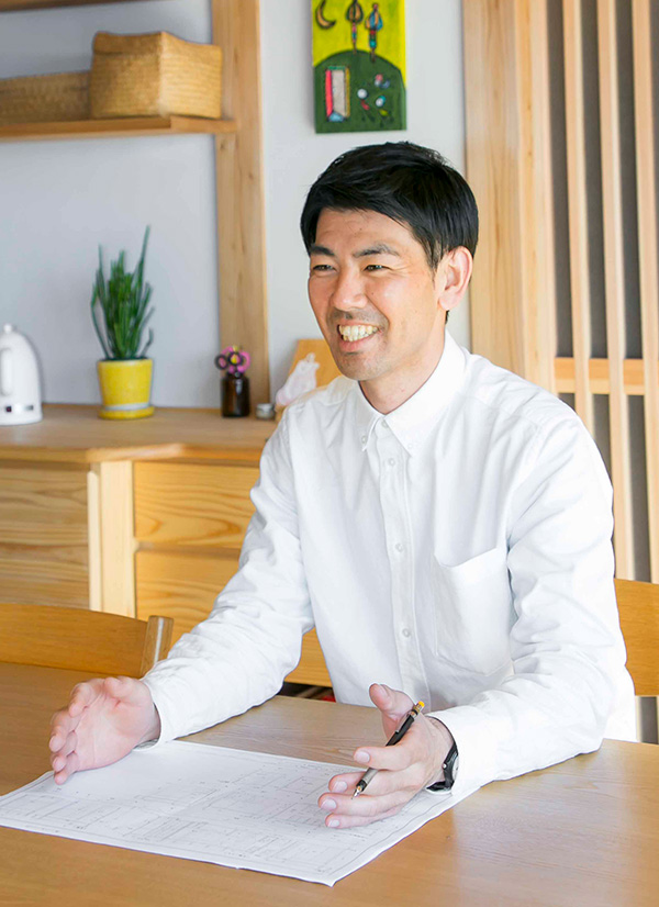 打ち合わせでは、家族の生活リズムや趣味などをじっくり伺い、様々な希望を図面の中にどう活かすかを大切にしています。子どもたちの世代まで受け継がれる住まいを、知識と経験を活かしてご提案いたします。