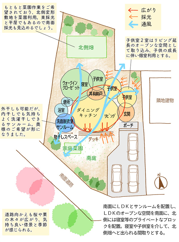 子育て中も、夫婦二人の暮らしになってからも。動きやすく心地よい生活が続いていく暮らし方が設計されています。