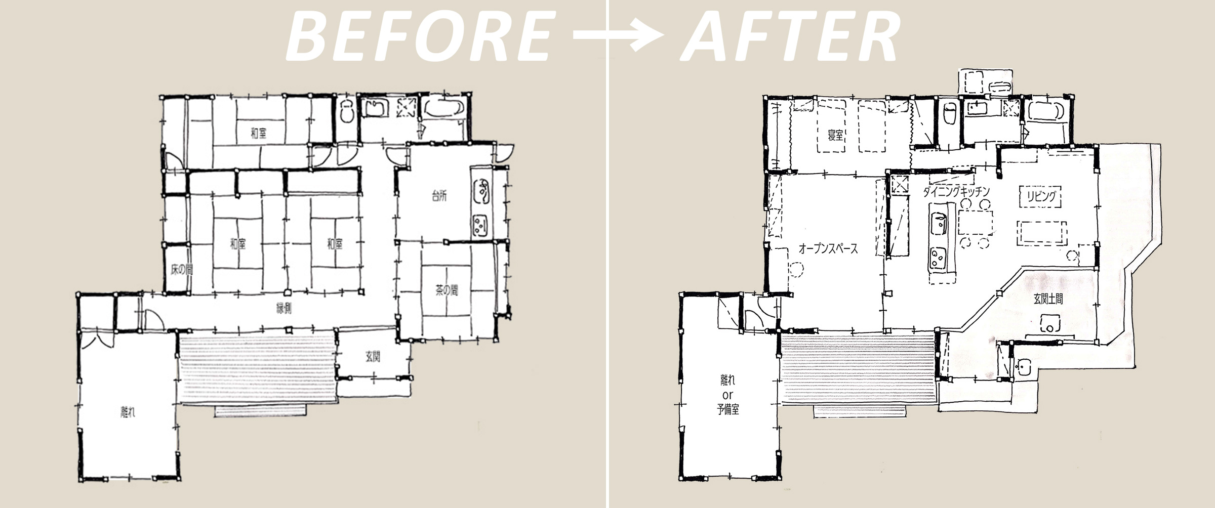 | お住まいの情報 | 延床面積:135.18m2(40.8坪)、改修面積:110.96m2(33.5坪)/夫婦 |
