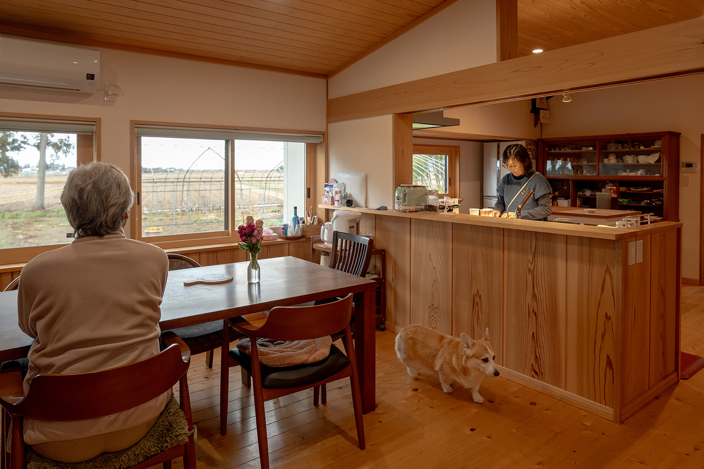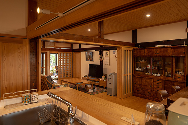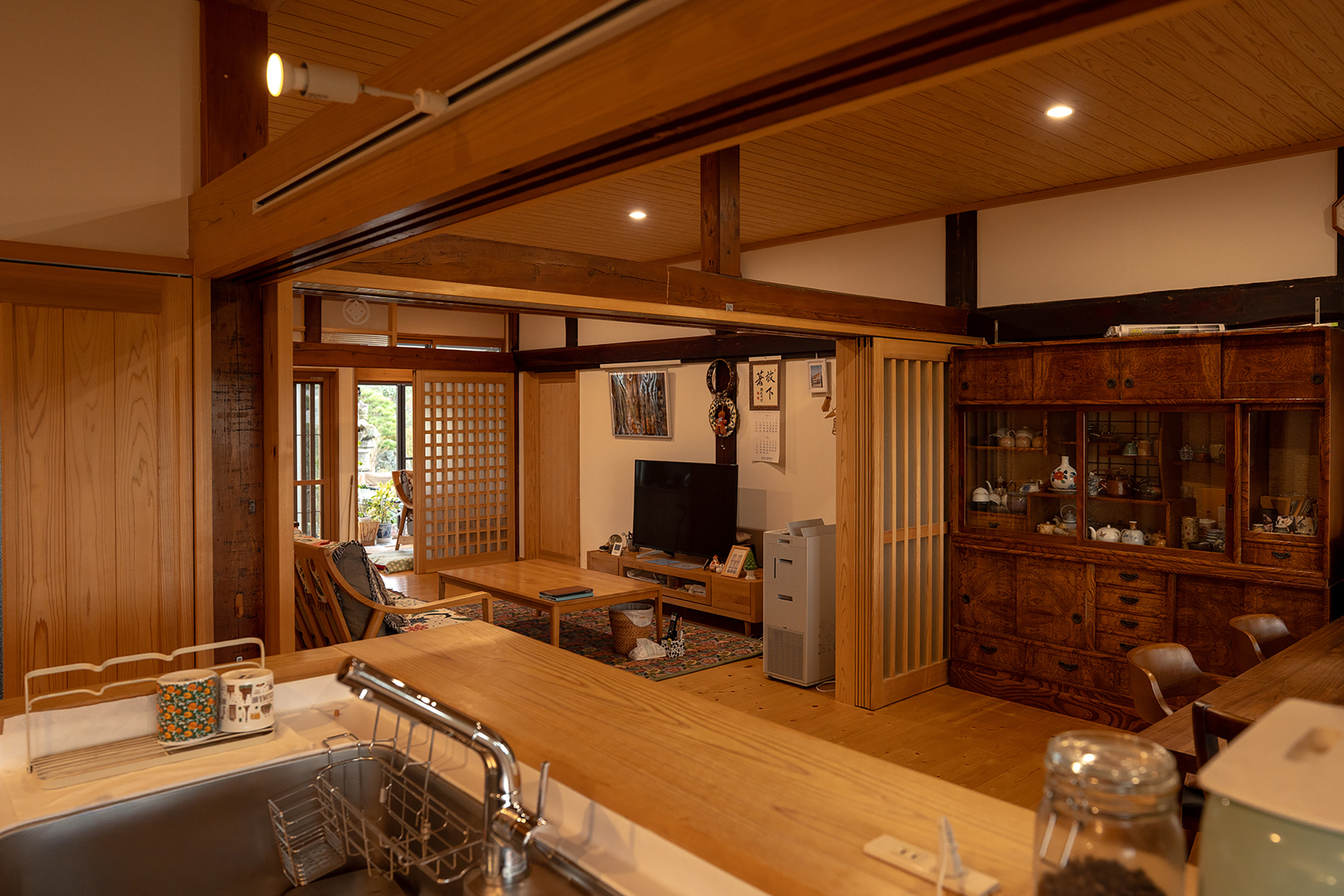 旧家の面持ちは残しつつ、普段の生活で使用する部分を中心に断熱改修を施しました。加えてキッチン、サニタリー、浴室、トイレなど水廻りの設備を最新の設備に交換。改修部分のUA値は0.75W/m2・Kと、新築と変わらないほどに性能を向上させています。